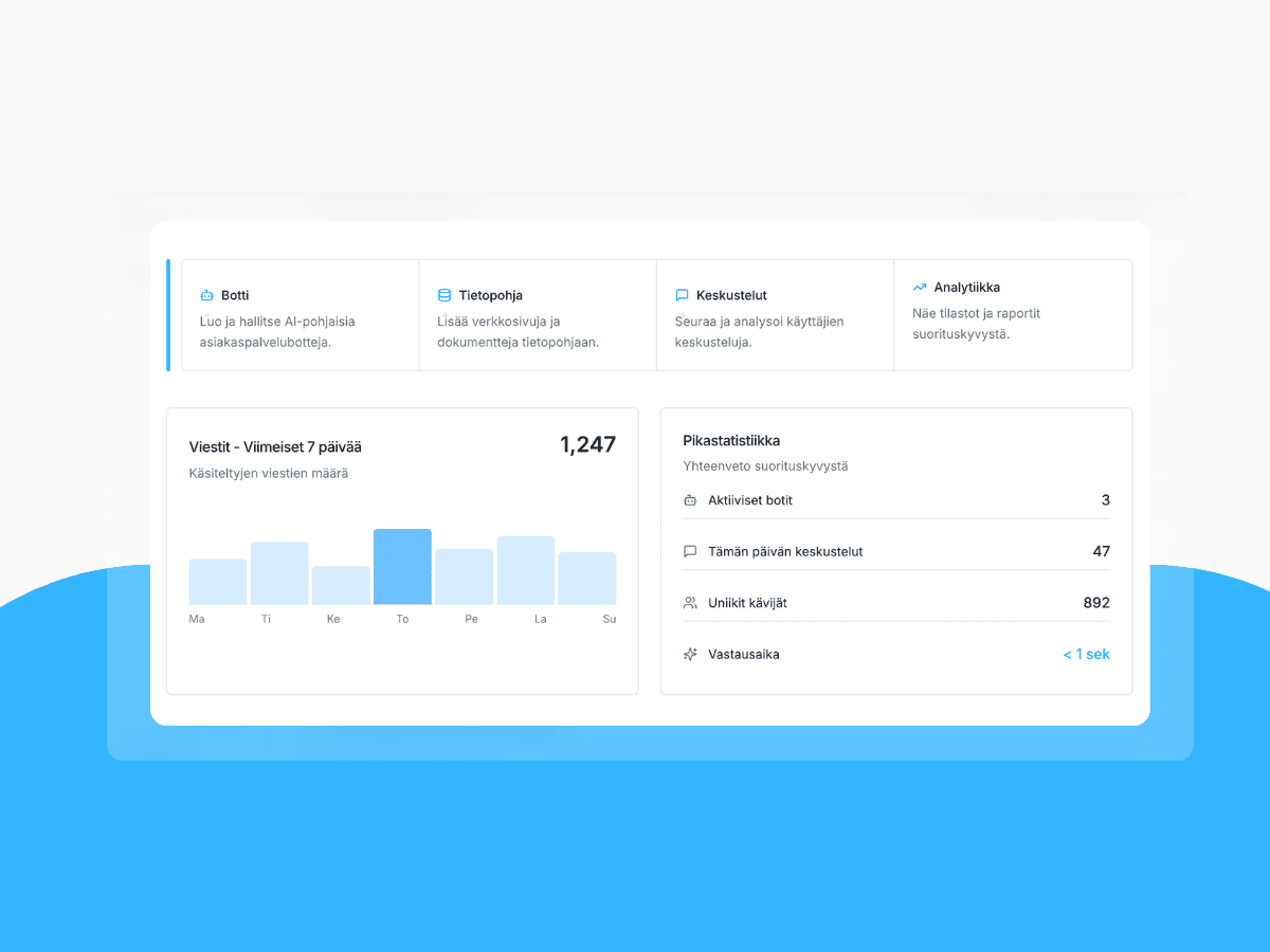 Unohda edestakaiset viestit vapaista ajoista. Agentio tarkistaa asiantuntijoidesi kalenterit (Google/Outlook/Office 365) reaaliajassa ja antaa asiakkaan varata sopivan ajan suoraan keskustelusta.